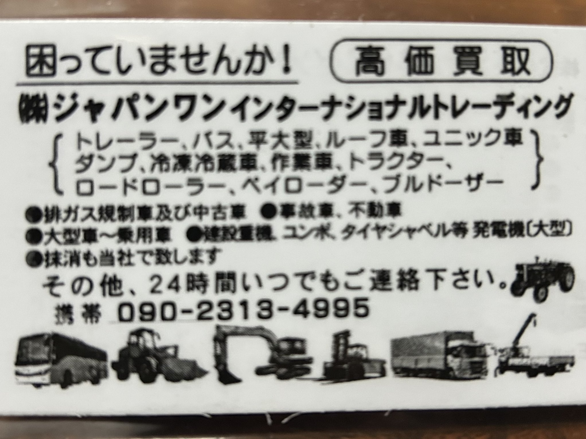 不審バイヤー不審バイヤー「ジャパンワンインターナショナルトレーディング」 2026.01.08 不審バイヤー 千葉県印西市 ⚠️ 不審バイヤー情報■画像■配布場所千葉県印西市■配布日時2026-01-07■不審者情報法人名株式会社ジャパンワンインターナショナルトレーディング担当者名シェザード住所不明電話090-2313-4995メールjapanone40@yahoo.com